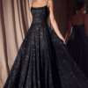 CD- SATIN FITTING SLIT GOWN IN BLACK